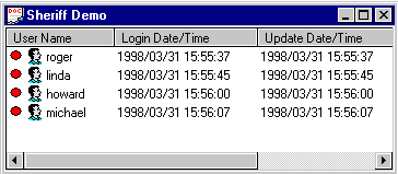 You can monitor active programs and which active users have access to them. Run the Sheriff Administrator on the server (the machine on which the shared licence is installed) then click on Monitor in the toolbar to display a list of software programs for which you are licensed. Select a product from those listed in the Product window and click on Monitor. The Properties for the selected product are displayed. Click on Close and the active users are displayed.